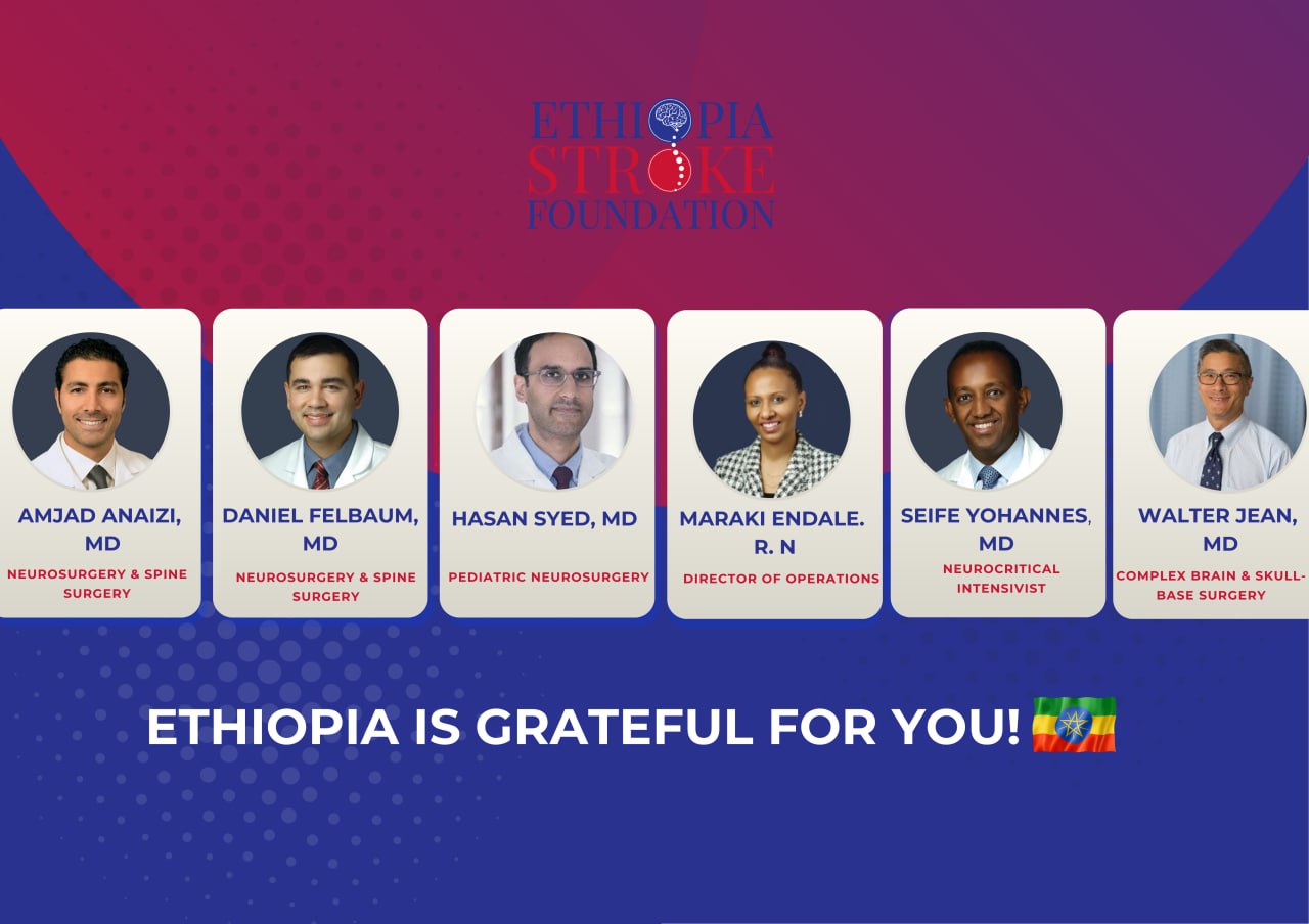 The Ethiopia Stroke Foundation (ESF) proudly welcomed, hosted, and supported a distinguished team of American neurosurgeons, neurocritical care specialists, and neuroscience practice managers for a vital neurosurgical and neurointerventional mission in Ethiopia.